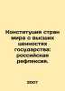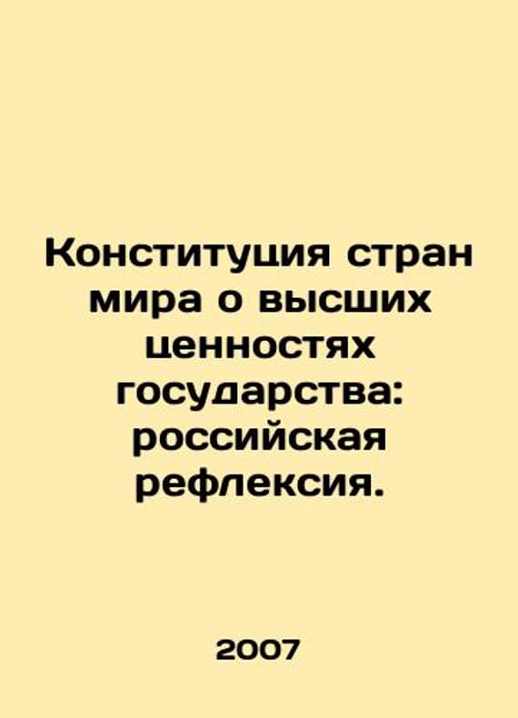 The Constitution of the Countries of the World on the Higher Values of the State: Russian Reflection. In Russian /Konstitutsiya stran mira o vysshikh tsennostyakh gosudarstva: rossiyskaya refleksiya. Proceedings of the Permanent Scientific Seminar. Issue # 4 M. Scientific Expert 2007. 136 p. We have thousands of titles and often several copies of each title may be available. Please feel free to contact us for a detailed description of the copies available. SKUalb9a885c0ce404098d.