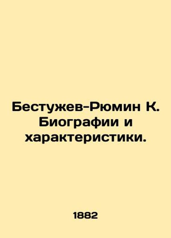 Bestuzhev-Rumin K. Biographies and Characteristics. In Russian (ask us if in doubt)/Bestuzhev-Ryumin K. Biografii i kharakteristiki. Short description: In Russian (ask us if in doubt).Tatishchev Shletser. Karamzin Pogodin Solovyev Yeshevsky Hilferding SPb. Typography by V.S. Balashev 1882. 6 358s. We have thousands of titles and often several copies of each title may be available. Please feel free to contact us for a detailed description of the copies available. SKUalb9a9aa278170b5634