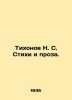 Tikhonov N. S. Poems and Prose. In Russian /Tikhonov N. S. Stikhi i proza. Art Literature 1945 416s. We have thousands of titles and often several copies of each title may be available. Please feel free to contact us for a detailed description of the copies available. SKUalb9abbd12816588616.