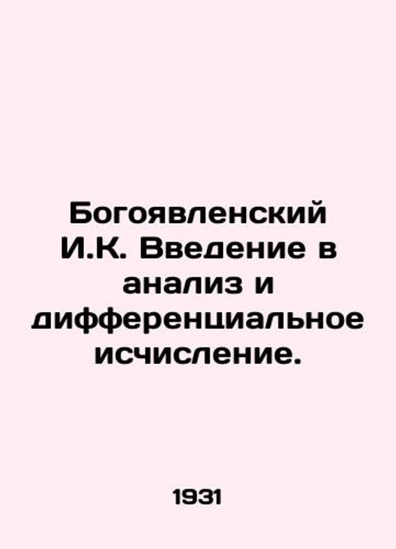 I. K. Epiphanys Introduction to Analysis and Differential Calculus. In Russian /Bogoyavlenskiy I.K. Vvedenie v analiz i differentsialnoe ischislenie. Cooperative publication of students of the Belarusian State Academy of Agriculture. 1931. We have thousands of titles and often several copies of each title may be available. Please feel free to contact us for a detailed description of the copies available. SKUalb9b3d8f3f1d19d43d.