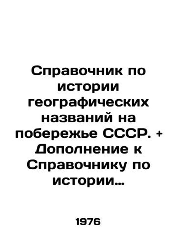 Reference book on the history of geographical names on the coast of the USSR. and Supplement to the Reference book on the history of geographical names on the coast of the USSR. In Russian /Spravochnik po istorii geograficheskikh nazvaniy na poberezhe SSSR. and Dopolnenie k Spravochniku po istorii geograficheskikh nazvaniy na poberezhe SSSR. Moscow. Main Department of Navigation and Oceanography of the Ministry of Defence of the USSR. 1976-1977. 372 p. We have thousands of titles and often several copies of each title may be available. Please feel free to contact us for a detailed description of the copies available. SKUalb9b54f768113991f9.