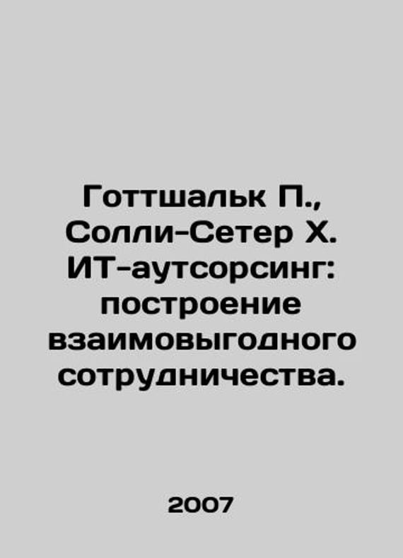 Gottschalk, Solly-Seter H. IT outsourcing: building mutually beneficial cooperation. In Russian /Gottshalk, Solli-Seter Kh. IT-autsorsing: postroenie vzaimovygodnogo sotrudnichestva. Translation from English by M. Alpin Business Books 2007.We have thousands of titles and often several copies of each title may be available. Please feel free to contact us for a detailed description of the copies available. SKUalb9b62c525fa80e633.