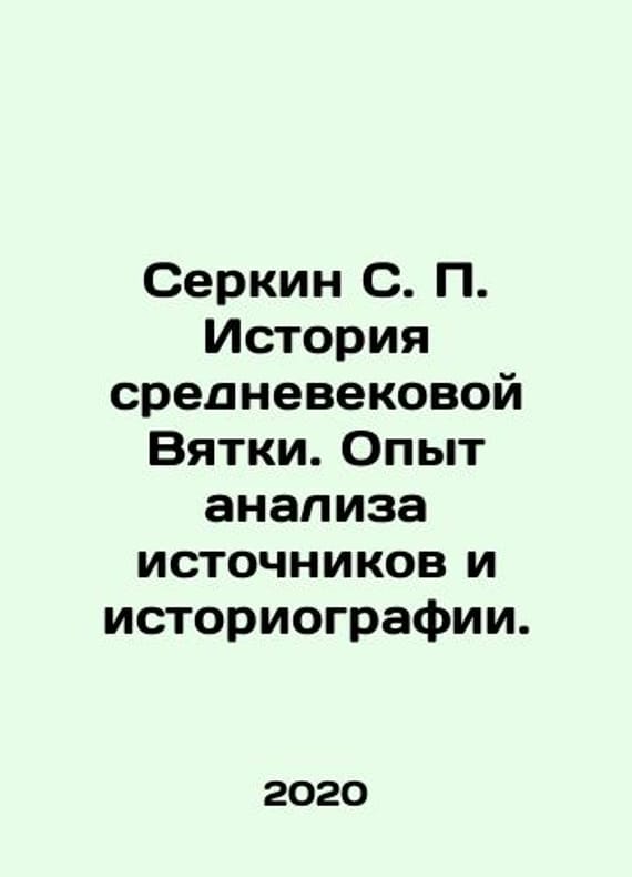 Serkin S. P. History of medieval Vyatka. Experience in the analysis of sources and historiography. In Russian /Serkin S. P. Istoriya srednevekovoy Vyatki. Opyt analiza istochnikov i istoriografii. Scientific Editor, Doctor of Historical Sciences, A. I. Komissarenko. Kirov: Vesi, 2020. 127 p. We have thousands of titles and often several copies of each title may be available. Please feel free to contact us for a detailed description of the copies available. SKUalb9b6699f35cc17b61.