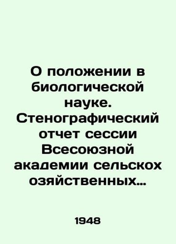 On the state of biological science. Verbatim record of the session of the All-Un. All-Union Academy of Agricultural Sciences named after V. I. Lenin. Editorial Board: V. N. Stoletov A. M. Sirotin G. K. Obyedkov. Moscow. OGIZ-SELHOZGIZ. State Publishing House of Agricultural Literature. 1948. 536 p. SKUalb9b6bb1fec992c997.