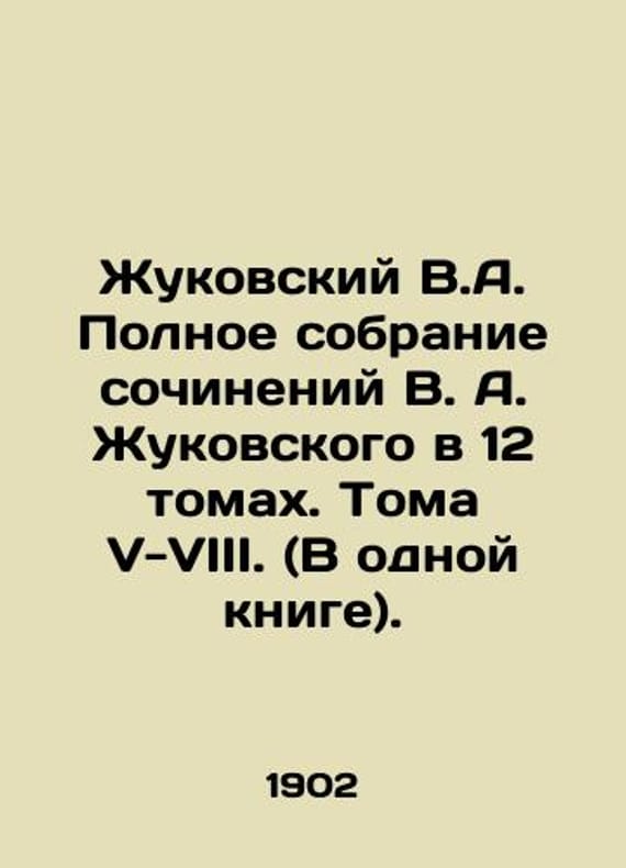 Zhukovsky V.A. Complete collection of works by V.A. Zhukovsky in 12 volumes. Volumes V-VIII. (In one book). In Russian /Zhukovskiy V.A. Polnoe sobranie sochineniy V. A. Zhukovskogo v 12 tomakh. Toma V-VIII. (V odnoy knige). St. Petersburg 1902. We have thousands of titles and often several copies of each title may be available. Please feel free to contact us for a detailed description of the copies available. SKUalb9b72fce468e26dbe.