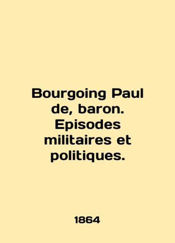 Bourgoing Paul de baron. Episodes militaires et politiques. In English (ask us if in doubt)/Bourgoing Paul de baron. Episodes militaires et politiques. Souvenirs dhistoire contemporaine. Paris. E. Dentu. 1864. 4 IV 2 599 1 p We have thousands of titles and often several copies of each title may be available. Please feel free to contact us for a detailed description of the copies available. SKUalb9b74d8bebfc69d1d