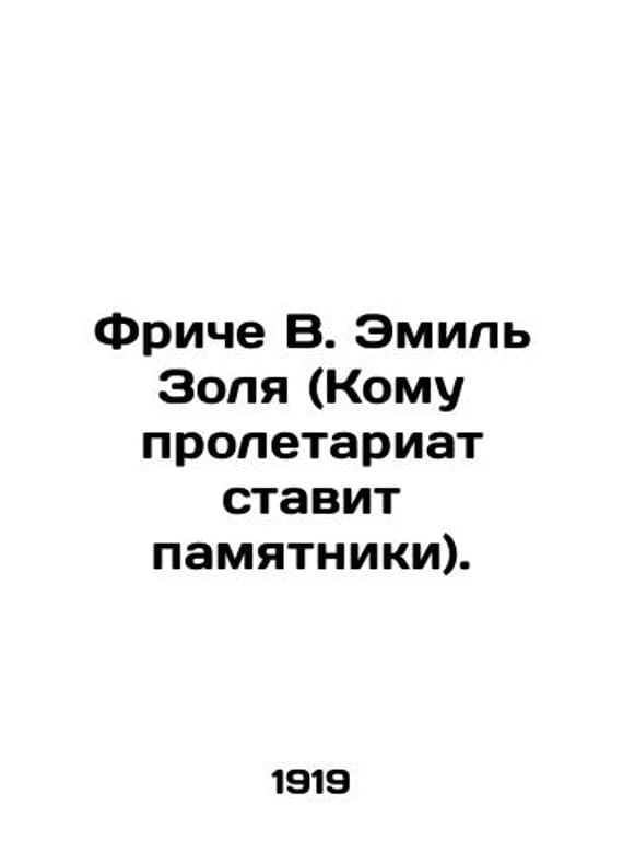 Fritsche W. Emile Zola (To whom the proletariat erects monuments). In Russian /Friche V. Emil Zolya (Komu proletariat stavit pamyatniki). Moscow: Printing Department of the Moscow Soviet of R. and K. D. 1919. We have thousands of titles and often several copies of each title may be available. Please feel free to contact us for a detailed description of the copies available. SKUalb9ba0fcb73a2d0d8f.