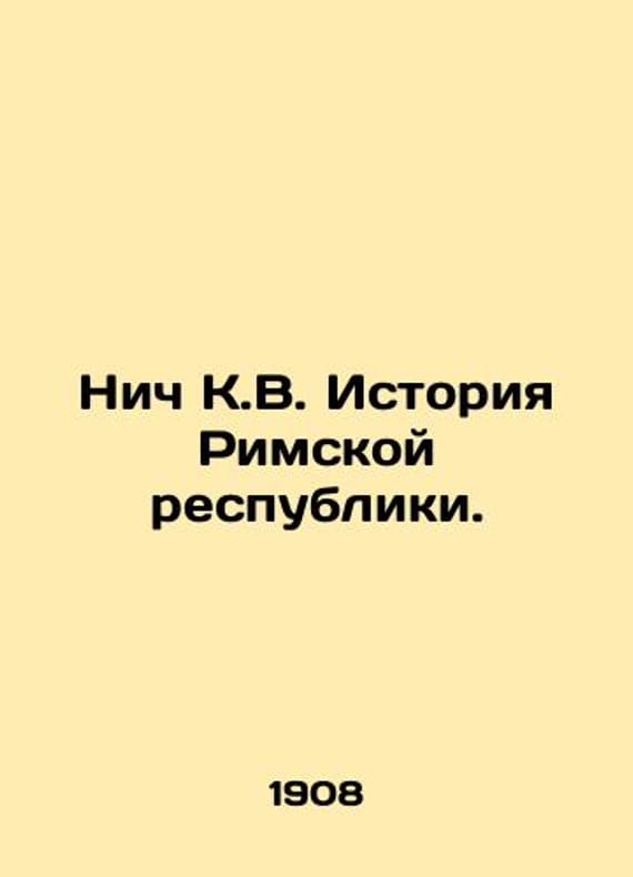 Nich K.V. History of the Roman Republic. In Russian /Nich K.V. Istoriya Rimskoy respubliki. M. Typo-lithography of the Russian Partnership for Print and Publishing. 1908. XXVIII, 530 p. We have thousands of titles and often several copies of each title may be available. Please feel free to contact us for a detailed description of the copies available. SKUalb9ba18f8ed016ef21.