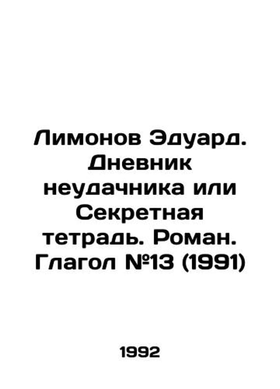 Limonov Eduard. The Diary of a Loser or The Secret Notebook. Roman. Verb # 13 (1991) In Russian /Limonov Eduard. Dnevnik neudachnika ili Sekretnaya tetrad. Roman. Glagol #13 (1991) Design of Dmitry Kedrin M. Magazine Verb 1992. 256s. We have thousands of titles and often several copies of each title may be available. Please feel free to contact us for a detailed description of the copies available. SKUalb9ba773e1927dcd64.
