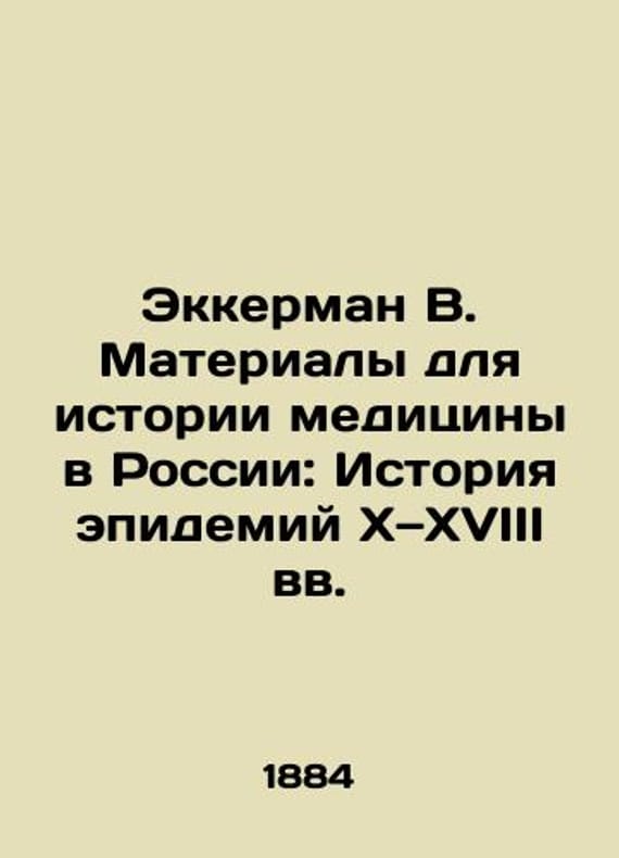 Eckerman V. Materials for the History of Medicine in Russia: The History of Epidemics in the X-18th Centuries In Russian /Ekkerman V. Materialy dlya istorii meditsiny v Rossii: Istoriya epidemiyxXVIII vv. Kazan: Typography by V.M. Klyuchnikov, 1884. 4, 55s. We have thousands of titles and often several copies of each title may be available. Please feel free to contact us for a detailed description of the copies available. SKUalb9bde803788aabd05.