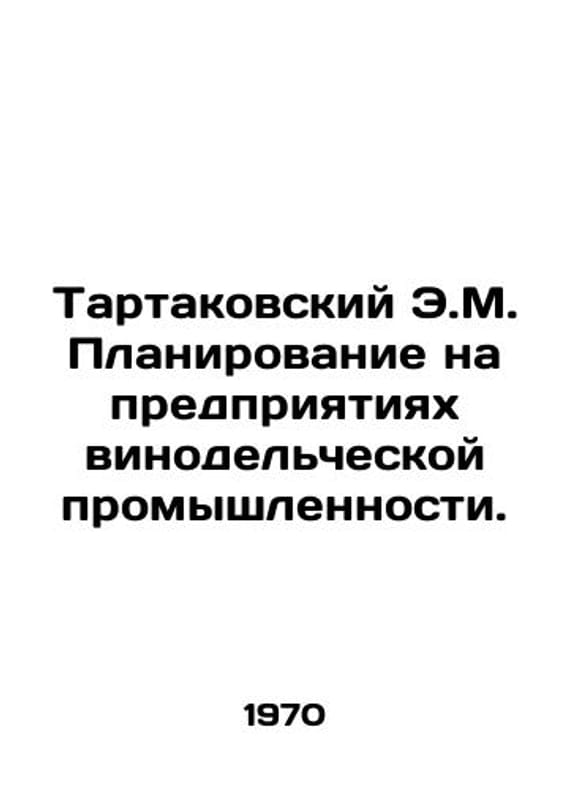 Tartakovsky E.M. Planning in the wine industry. In Russian /Tartakovskiy E.M. Planirovanie na predpriyatiyakh vinodelcheskoy promyshlennosti. M. Food industry 1970. 316s. We have thousands of titles and often several copies of each title may be available. Please feel free to contact us for a detailed description of the copies available. SKUalb9c1536e723060b6c.