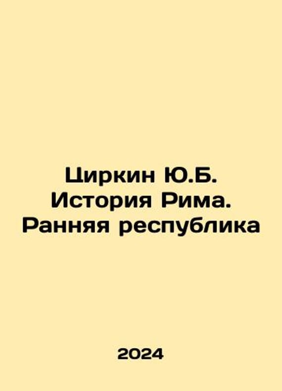 Zirkin Yu.B. History of Rome. The Early Republic In Russian /Tsirkin Yu.B. Istoriya Rima. Rannyaya respublika St. Petersburg Academy of Cultural Research 2024. 540s. We have thousands of titles and often several copies of each title may be available. Please feel free to contact us for a detailed description of the copies available. SKUalb3ee4a396550a6406.