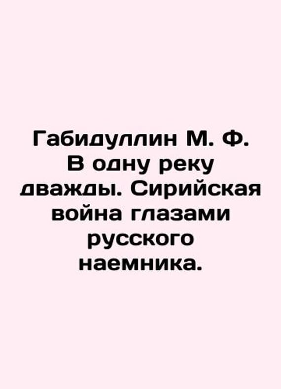 Gabidullin M. F. Into the same river twice. The Syrian war through the eyes of a Russian mercenary. In Russian /Gabidullin M. F. V odnu reku dvazhdy. Siriyskaya voyna glazami russkogo naemnika. Yekaterinburg Gonzo 2022 288s. We have thousands of titles and often several copies of each title may be available. Please feel free to contact us for a detailed description of the copies available. SKUalb9c26d7426a01215c.