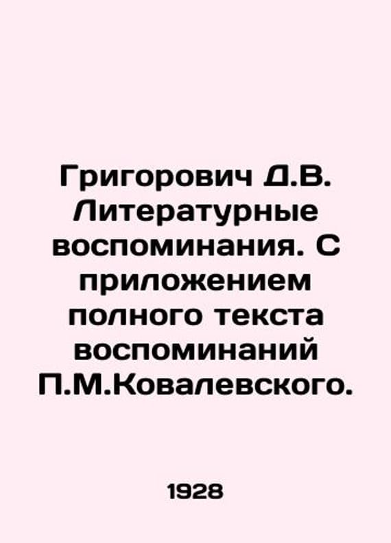 Grigorovich D.V. Literary memoirs. With the attachment of the full text of the memoirs of P.M.Kovalevsky. In Russian /Grigorovich D.V. Literaturnye vospominaniya. S prilozheniem polnogo teksta vospominaniy P.M.Kovalevskogo. With the attachment of the full text of P. Kovalevskys memoirs. Academia, 1928, XXXII, 516 p. We have thousands of titles and often several copies of each title may be available. Please feel free to contact us for a detailed description of the copies available. SKUalb9c63962fde8d5533.