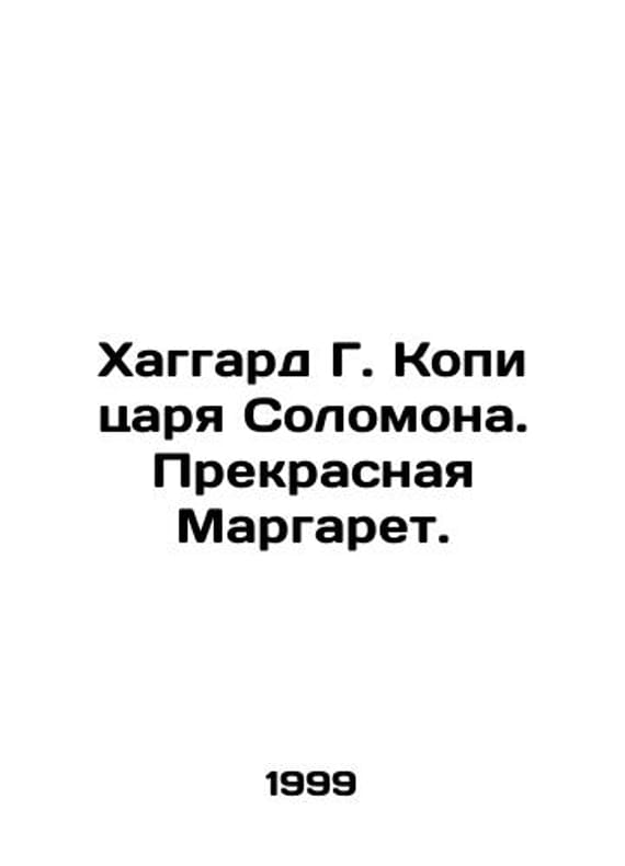 King Solomons Haggard G. Copy: The Lovely Margaret. In Russian /Khaggard G. Kopi tsarya Solomona. Prekrasnaya Margaret. Series: The Great Childrens Library. M. ROSMAN. 1999. 557 p. We have thousands of titles and often several copies of each title may be available. Please feel free to contact us for a detailed description of the copies available. SKUalb9c78640f8d688b69.
