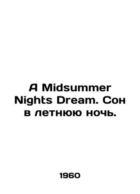 A Midsummer Nights Dream. A Midsummer Nights Dream. In English /A Midsummer Nights Dream. Son v letnyuyu noch. Jiri Trnka dolls and drawings. In English. Praha. Artia, 1960.We have thousands of titles and often several copies of each title may be available. Please feel free to contact us for a detailed description of the copies available. SKUalb9c8b6d2559bf59fd.