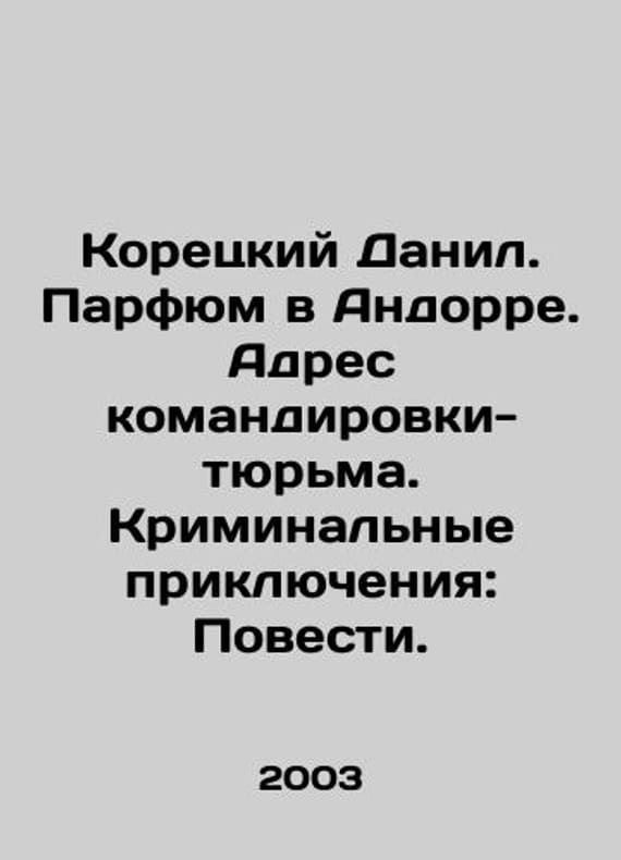 Koretsky Danil. Perfume in Andorra. Address of business trip-prison. Criminal Adventures: The Tales. In Russian /Koretskiy Danil. Parfyum v Andorre. Adres komandirovki-tyurma. Kriminalnye priklyucheniya: Povesti. Series: Black Cat. Moscow: Eksmo. 2003 year.We have thousands of titles and often several copies of each title may be available. Please feel free to contact us for a detailed description of the copies available. SKUalb9d0acc52c30523a5.