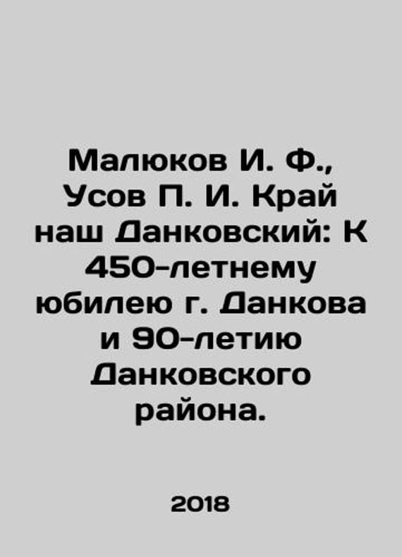 Malyukov I. F., Usov P. I. Krai our Dankovsky: To the 450th Anniversary of Dankov and the 90th Anniversary of Dankov District. In Russian /Malyukov I. F., Usov P. I. Kray nash Dankovskiy: K 450-letnemu yubileyu g. Dankova i 90-letiyu Dankovskogo rayona. Lipetsk Veda Society 2018. 200 p. We have thousands of titles and often several copies of each title may be available. Please feel free to contact us for a detailed description of the copies available. SKUalb9d3f6e289407b016.