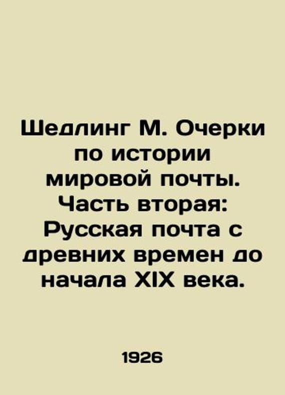 Shedling M. Essays on the History of the World Postal Service. Part Two: Russian Postal Service from Ancient Times to the Early 19th Century. In Russian /Shedling M. Ocherki po istorii mirovoy pochty. Chast vtoraya: Russkaya pochta s drevnikh vremen do nachala XIX veka. Series: Library of the journal Life and Communications Technology. M: Publishing House Communications, 1926. 2, 123-250, IV, 2 p. We have thousands of titles and often several copies of each title may be available. Please feel free to contact us for a detailed description of the copies available. SKUalb9d52b4ad7878e954.