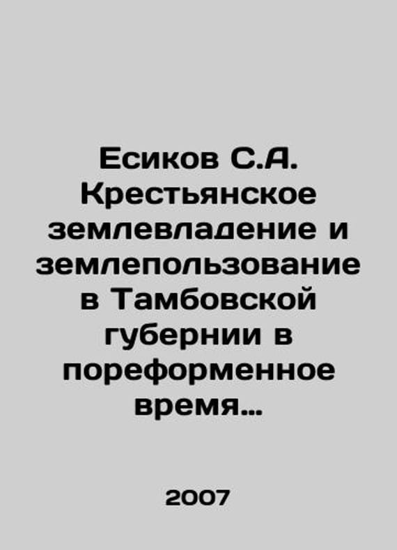 Yesikov S.A. Peasant Land Ownership and Land Use in Tambov Province in the Post-Reform Time (1861-1905): Historical and Legal Research. In Russian /Esikov S.A. Krestyanskoe zemlevladenie i zemlepolzovanie v Tambovskoy gubernii v poreformennoe vremya (1861-1905 gg.): Istoriko-pravovoe issledovanie. Monograph. St. Petersburg: Nestor. 2007. 190 p. We have thousands of titles and often several copies of each title may be available. Please feel free to contact us for a detailed description of the copies available. SKUalb9d606a73e86538bd.