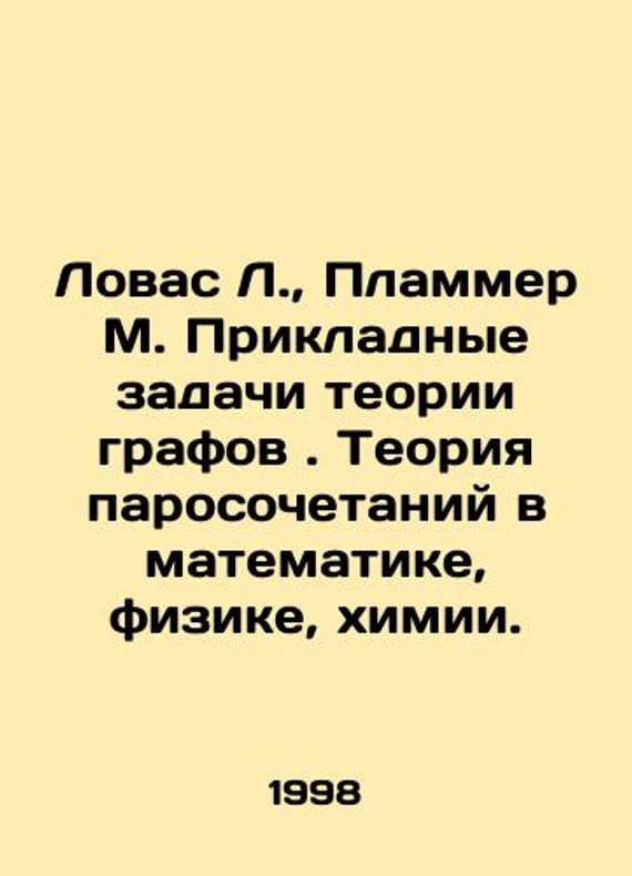 Lovas L. Plummer M. Applied problems of graph theory. Couple theory in mathematics physics chemistry. /Lovas L. Plammer M. Prikladnye zadachi teorii grafov. Teoriya parosochetaniy v matematike fizike khimii. Translation from English. Moscow World 1998. 654s. We have thousands of titles and often several copies of each title may be available. Please feel free to contact us for a detailed description of the copies available. SKUalb9ec102015596ee73