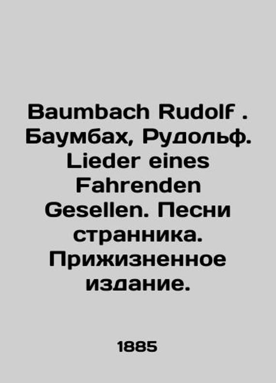 Baumbach Rudolf. Baumbach, Rudolf. Lieder eines Fahrenden Gesellen. Songs of a Stranger. A Life Edition. In German /Baumbach Rudolf. Baumbakh, Rudolf. Lieder eines Fahrenden Gesellen. Pesni strannika. Prizhiznennoe izdanie. Sechzehntes Tausend. In German. Leipzig. Verlag von A.G. Liebeskind 1885. VI, 2, 205, 2 p. We have thousands of titles and often several copies of each title may be available. Please feel free to contact us for a detailed description of the copies available. SKUalb9ee37bfbdc3f9f75.