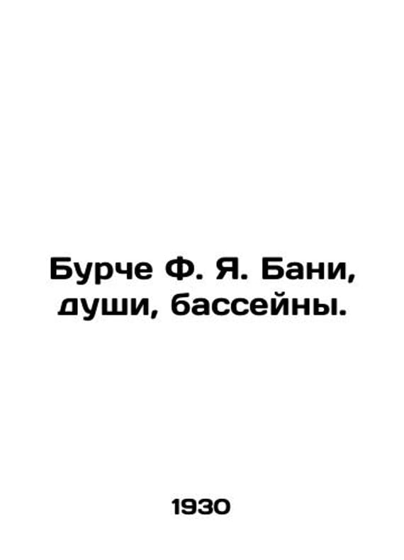 Burce F.I. Baths showers swimming pools. In Russian (ask us if in doubt)/Burche F. Ya. Bani dushi basseyny. Short description: In Russian (ask us if in doubt).Reference Book for Engineers Technicians and Sanitary Physicians We have thousands of titles and often several copies of each title may be available. Please feel free to contact us for a detailed description of the copies available. SKUalb9f003ba39647a8c6