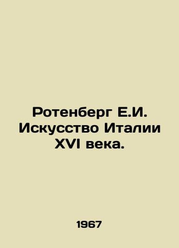 Rotenberg E. I. The Art of Sixteenth Century Italy. In Russian (ask us if in doubt)/Rotenberg E. I. Iskusstvo Italii XVI veka. Monuments of World Art series. Series 1. Art of 1967. 124 p We have thousands of titles and often several copies of each title may be available. Please feel free to contact us for a detailed description of the copies available. SKUalb89a51936c1c45f99
