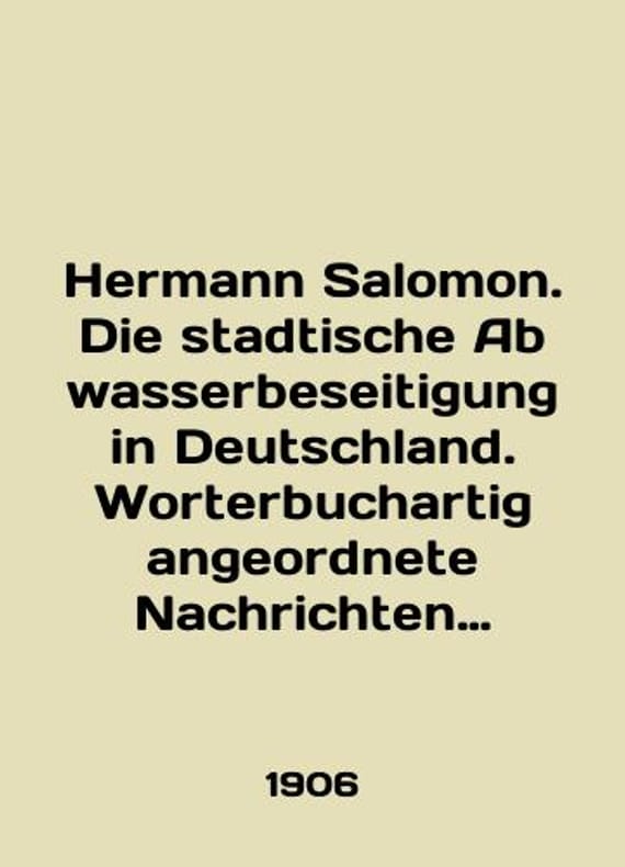 Hermann Salomon. Die stadtische Abwasserbeseitigung in Deutschland. Worterbuchartig angeordnete Nachrichten und Beschreibungen stadtischer Kanalisations- und Klaranlagen in deutschen Wohnplatzen In German (ask us if in doubt)/Hermann Salomon. Die stadtische Abwasserbeseitigung in Deutschland. Worterbuchartig angeordnete Nachrichten und Beschreibungen stadtischer Kanalisations- und Klaranlagen in deutschen Wohnplatzen. Gorodskaya kanalizatsionnaya set v Germanii.Raspolozhenie kanalizatsii i ochist Legendary work. Verlag von Gustav Fischer in Jena 1906 576 p. SKUalb9f373bd4fcc22f2d.