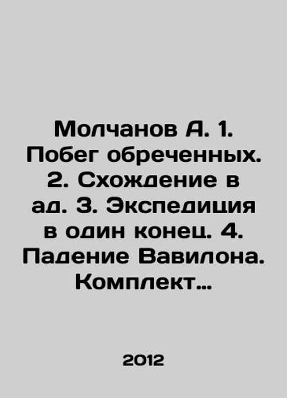 Molchanov A. 1. Escape of the doomed. 2. Descent to hell. 3. One-way expedition. 4. Fall of Babylon. Set of their 4 books. In Russian /Molchanov A. 1. Pobeg obrechennykh. 2. Skhozhdenie v ad. 3. Ekspeditsiya v odin konets. 4. Padenie Vavilona. Komplekt ikh 4-kh knig. The Secret Fairway series. M. Veche. 2012-2014.We have thousands of titles and often several copies of each title may be available. Please feel free to contact us for a detailed description of the copies available. SKUalb9f5d716544e09a31.