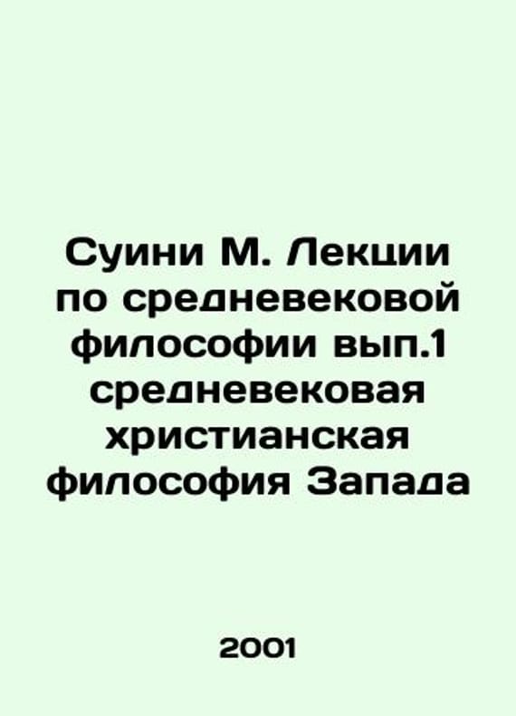 Sweeney M. Lectures on Medieval Philosophy, p. 1 Medieval Christian Philosophy of the West In Russian /Suini M. Lektsii po srednevekovoy filosofii vyp.1 srednevekovaya khristianskaya filosofiya Zapada M. Y.A. Shichalins Greek-Latin Cabinet 2001, 3004 p. We have thousands of titles and often several copies of each title may be available. Please feel free to contact us for a detailed description of the copies available. SKUalb9f69eb3afdf0c801.
