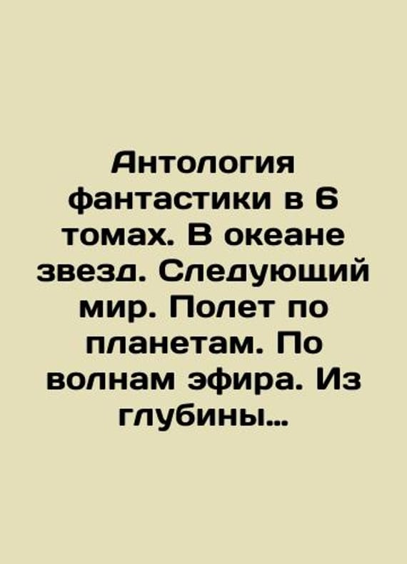 An anthology of fiction in 6 volumes. In the ocean of stars. The next world. Flight across planets. On the waves of the ether. From the depths of the universe. To storm the universe. In Russian /Antologiya fantastiki v 6 tomakh. V okeane zvezd. Sleduyushchiy mir. Polet po planetam. Po volnam efira. Iz glubiny Vselennoy. Na shturm Vselennoy. Series: Library of Adventure and Science Fiction. Arkaim AzGard. A New Book. We have thousands of titles and often several copies of each title may be available. Please feel free to contact us for a detailed description of the copies available. SKUalb9f759ff1db4cd0e8.