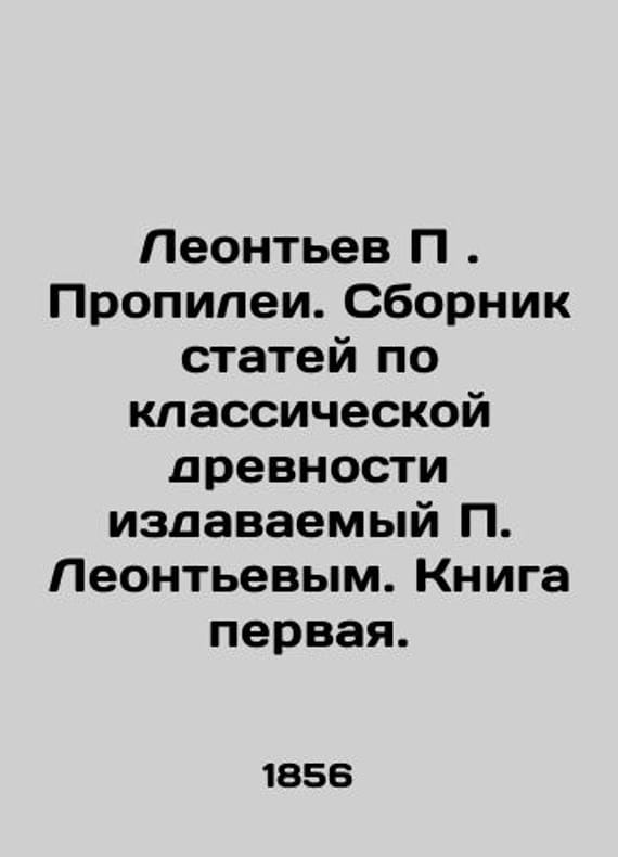Leontyev P. Propilei. A collection of articles on classical antiquity published by P. Leontyev. Book one. In Russian /Leontev P. Propilei. Sbornik statey po klassicheskoy drevnosti izdavaemyy P. Leontevym. Kniga pervaya. M. In the University Printing House. 1856. 359s. We have thousands of titles and often several copies of each title may be available. Please feel free to contact us for a detailed description of the copies available. SKUalb9fec4e107cbaf211.