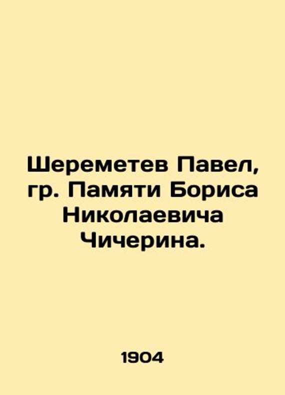 Pavel Sheremetev in Memory of Boris Nikolaevich Chicherin. In Russian (ask us if in doubt)/Sheremetev Pavel gr. Pamyati Borisa Nikolaevicha Chicherina.M.: T-Vo Skoropysni A.A. Levenson 1904. 23s. We have thousands of titles and often several copies of each title may be available. Please feel free to contact us for a detailed description of the copies available. SKUalba07bafe2412f3652