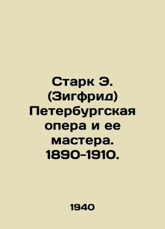 Stark E. (Siegfried) St. Petersburg Opera and its masters. 1890-1910. In Russian (ask us if in doubt)/Stark E. (Zigfrid) Peterburgskaya opera i ee mastera. 1890-1910.. Short description: In Russian (ask us if in doubt).1940 year 270 p. il. We have thousands of titles and often several copies of each title may be available. Please feel free to contact us for a detailed description of the copies available. SKUalba11ef41762f8c7ab