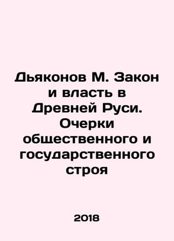 Deacons M. Law and Power in Ancient Rus. Essays on the Social and State System In Russian /Dyakonov M. Zakon i vlast v Drevney Rusi. Ocherki obshchestvennogo i gosudarstvennogo stroya Series: In Search of the Lost Legacy of M Veche 2018 416c. We have thousands of titles and often several copies of each title may be available. Please feel free to contact us for a detailed description of the copies available. SKUalba14597d48b776147.