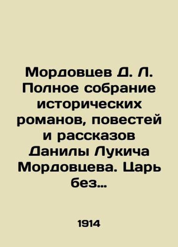 D.L. Mordovtsevs Complete collection of historical novels, short stories and short stories by Danila Lukich Mordovtsev. Tsar without Kingdom. Historical Stories. In Russian /Mordovtsev D. L. Polnoe sobranie istoricheskikh romanov, povestey i rasskazov Danily Lukicha Mordovtseva. Tsar bez tsarstva. Istoricheskik rasskazy. Petrograd 1914. We have thousands of titles and often several copies of each title may be available. Please feel free to contact us for a detailed description of the copies available. SKUalba15e37659e4650b8.