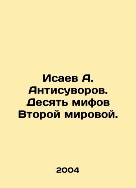 Isaev A. Antisuvorov. Ten Myths of World War II. In Russian /Isaev A. Antisuvorov. Desyat mifov Vtoroy mirovoy. War and Me. M. Yauza, Eksmo 2004. 416 p. We have thousands of titles and often several copies of each title may be available. Please feel free to contact us for a detailed description of the copies available. SKUalba1ba22aa973d25e9.