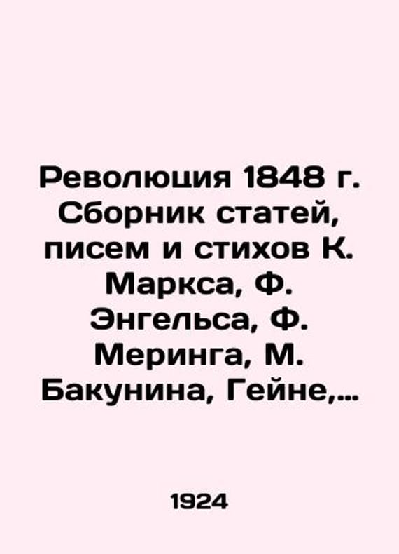 Revolution of 1848: A collection of articles, letters and poems by K. Marx, F. Engels, F. Mehring, M. Bakunin, Heine, Gerweg, Freiligrat, etc. In Russian /Revolyutsiya 1848 g. Sbornik statey, pisem i stikhov K. Marksa, F. Engelsa, F. Meringa, M. Bakunina, Geyne, Gervega, Freyligrata i dr. Translation from German under the editorship and with a foreword by N. N. Popov. M. State Publishing House. 1924. We have thousands of titles and often several copies of each title may be available. Please feel free to contact us for a detailed description of the copies available. The delivery of this book might be delayed beyond the usual timeframe due to extended processing and preparation before shipment, and faster shipping options are not offered. Please inform us if you need the order by a certain date or have a deadline.SKUalba204fe7b67083d37