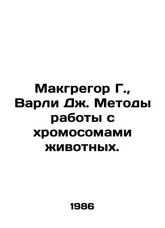 McGregor G., Varley J. Methods of Working with Animal Chromosomes. In Russian /Makgregor G., Varli Dzh. Metody raboty s khromosomami zhivotnykh.Translation from English of V.M.Gindilis, Doctor of Biological Sciences, and Y.B.Yurov, Candidate of Biological Sciences, edited by Prof. N.N.Vorontsov, M. Mir, 1986.We have thousands of titles and often several copies of each title may be available. Please feel free to contact us for a detailed description of the copies available. SKUalba25a75551283d940.