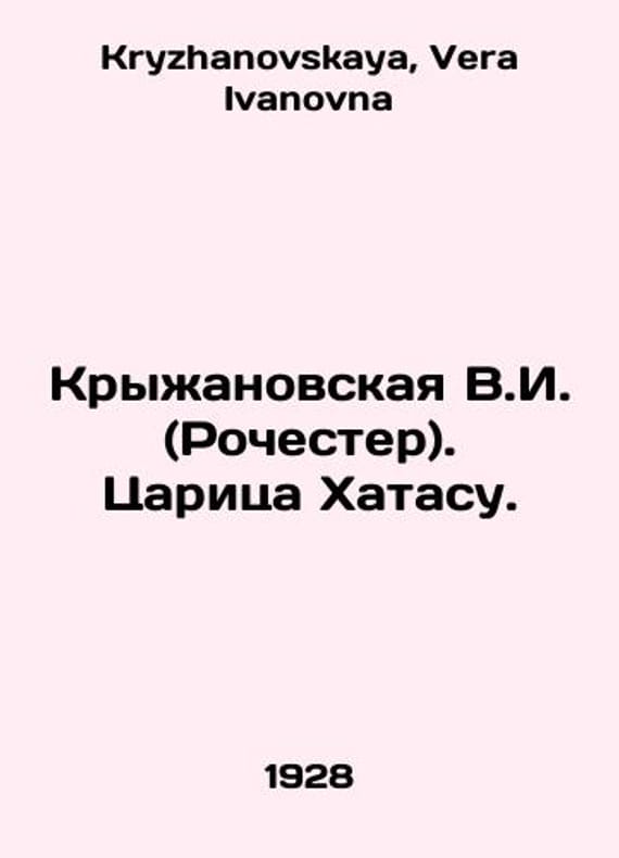 Kryzhanovskaya V.I. (Rochester). Tsarina Khatasu. In Russian /Kryzhanovskaya V.I. (Rochester). Tsaritsa Khatasu. Riga. Academy. 1928. 160s. We have thousands of titles and often several copies of each title may be available. Please feel free to contact us for a detailed description of the copies available. SKUalba26f47c7b691fb06.