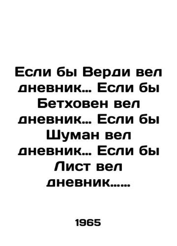If Verdi kept a diary: If Beethoven kept a diary: If Schumann kept a diary: If Liszt kept a diary: If Bach kept a diary: If Mozart kept a diary. In Russian (ask us if in doubt)/Esli by Verdi vel dnevnik Esli by Betkhoven vel dnevnik Esli by Shuman vel dnevnik Esli by List vel dnevnik Esli by Bakh vel dnevnik Esli by Motsart vel dnevnik.. description: In Russian (ask us if in doubt).Collection of books from the series-Books-Diaries in 6 books. Budapest Corvina. 1965-1966. 1224s. We have thousands of titles and often several copies of each title may be available. Please feel free to contact us for a detailed description of the copies available. SKUalba30c3a51c6444967