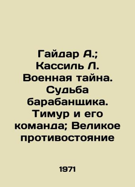 "Gaidar A.; Kassil L. Military Mystery. The Fate of the Drummer. Timur and His Team; The Great Confrontation In Russian /Gaydar A.; Kassil L. Voennaya tayna. Sudba barabanshchika. Timur i ego komanda; Velikoe protivostoyanie Pioneer Library (Series) Volume 1 M DL 1971.We have thousands of titles and often several copies of each title may be available. Please feel free to contact us for a detailed description of the copies available. SKUalba33d1b226d97103b."