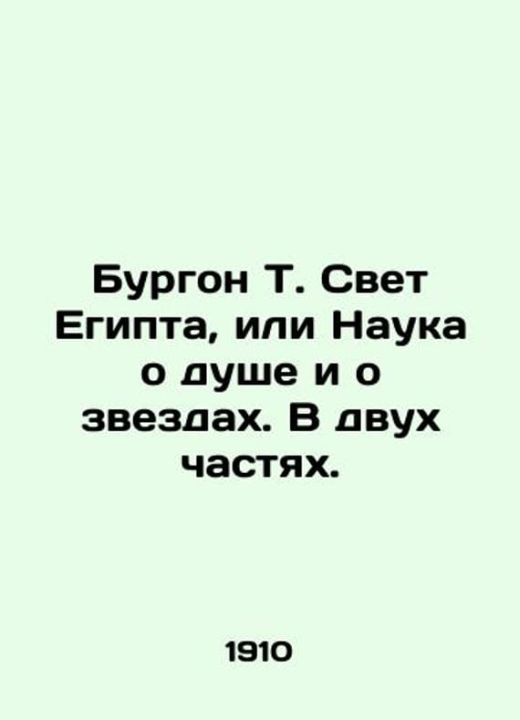 Bourgon T. The Light of Egypt or The Science of Soul and the Stars. In two parts. In Russian (ask us if in doubt)/Burgon T. Svet Egipta ili Nauka o dushe i o zvezdakh. V dvukh chastyakh.Part 2. The Science of the Soul. Part 2. The Science of the Stars. Translated and edited by V.Zakryagaev. Vyazma Typography by Pisarevskaya. 1910. The Life Edition in Russian. The Light of Egypt is rightly called a precious book in Europe.. SKUalba4274a92c759244f.