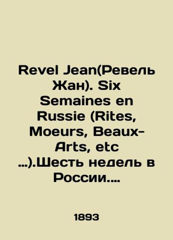 Revel Jean. Six Semains en Russie (Rites, Moeurs, Beaux-Arts, etc.).Six weeks in Russia. Habits, customs, art In Russian /Revel Jean(Revel Zhan). Six Semaines en Russie (Rites, Moeurs, Beaux-Arts, etc ).Shest nedel v Rossii. Privychki, obychai, iskusstvo.na fr.yaz. Paris 1893. 376s. We have thousands of titles and often several copies of each title may be available. Please feel free to contact us for a detailed description of the copies available. SKUalba42965edc8cc998c.