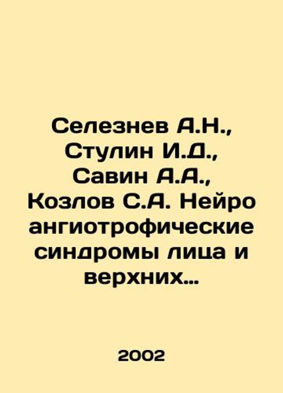 Seleznev A.N., Stulin I.D., Savin A.A., Kozlov S.A. Neuroangiotrophic syndromes of the face and upper limbs. Complex examination and treatment. In Russian /Seleznev A.N., Stulin I.D., Savin A.A., Kozlov S.A. Neyroangiotroficheskie sindromy litsa i verkhnikh konechnostey. Kompleksnoe obsledovanie i lechenie. M Lead 2002 96 pp. We have thousands of titles and often several copies of each title may be available. Please feel free to contact us for a detailed description of the copies available. SKUalba46936eb6c0027b6.