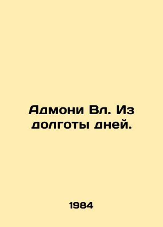 Admoni Vl. From the longitude of days. In Russian /Admoni Vl. Iz dolgoty dney. Poems 1925-1993.. Artist Evelina Solovyova L. SP. 1984. 88 p. We have thousands of titles and often several copies of each title may be available. Please feel free to contact us for a detailed description of the copies available. SKUalba4bb41163fdb8bcf.