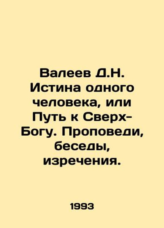 Valeev D.N. The Truth of One Man, or the Way to the SuperGod. Preaching, Conversations, Speeches. In Russian /Valeev D.N. Istina odnogo cheloveka, ili Put k Sverkh-Bogu. Propovedi, besedy, izrecheniya. Kazan. TAN-Zarya. 1993. 202 p. We have thousands of titles and often several copies of each title may be available. Please feel free to contact us for a detailed description of the copies available. SKUalba4bca31036ca4cfc.