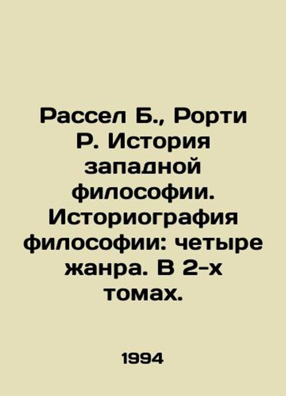 Russell B., Rorty R. History of Western Philosophy. History of Philosophy: Four Genres. In 2 Volumes. In Russian /Rassel B., Rorti R. Istoriya zapadnoy filosofii. Istoriografiya filosofii: chetyre zhanra. V 2-kh tomakh. Subg.Tselishev V.V. Novosibirsk. Novosibirsk University Publishing House. 1994. 464 p. We have thousands of titles and often several copies of each title may be available. Please feel free to contact us for a detailed description of the copies available. SKUalba4caf33b47b93ce0.