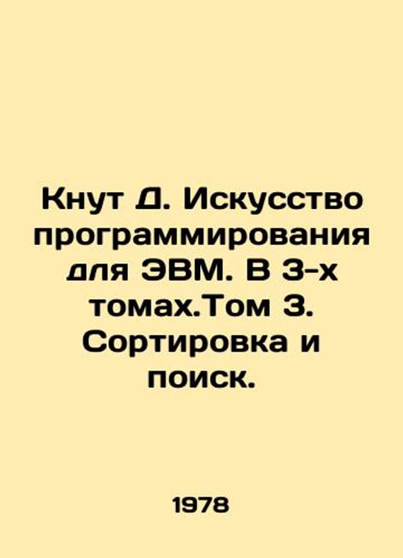 Knut D. The Art of Computer Programming. In 3 Volumes. Volume 3. Sorting and Search. In Russian /Knut D. Iskusstvo programmirovaniya dlya EVM. V 3-kh tomakh.Tom 3. Sortirovka i poisk. Translated from English by M. Mir 1978. 848 p. We have thousands of titles and often several copies of each title may be available. Please feel free to contact us for a detailed description of the copies available. SKUalba4d47a9a79df6edc.